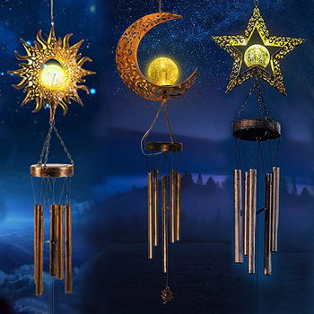 Decoración de jardín impermeable para exteriores, luz de jardín, colgante hueco de hierro, luz de ambiente, colgante de Luna Solar, carillón de viento